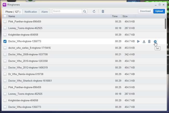 Dzwonkami można zarządzać oddzielnie za pomocą panelu „Dzwonki”. Na tym panelu możesz „przesyłać” i „pobierać” dzwonki do iz urządzenia, a nawet „ustawiać” dzwonek dla urządzenia.