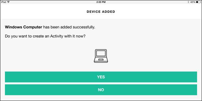 Gdy pojawi się pytanie, czy chcesz utworzyć działanie, wybierz Tak. Nie będziesz w stanie nim sterować, dopóki nie dodasz do niego działania, ponieważ w ten sposób zdalne połączenie paruje się z komputerem.
