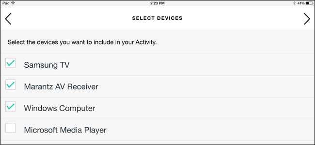Następnie utwórz działanie o nazwie „Oglądanie telewizji” (lub cokolwiek chcesz), które zawiera oba na liście urządzeń: