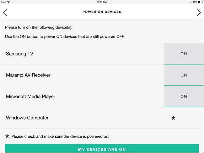 Harmony Hub powinien sparować się z komputerem z systemem Windows, a na komputerze i tablecie zostanie wyświetlony komunikat o pomyślnym zakończeniu. Stamtąd możesz zmapuj przyciski na pilocie tak jak każde inne urządzenie za pośrednictwem aplikacji Harmony na telefonie lub tablecie lub aplikacji MyHarmony na komputerze.