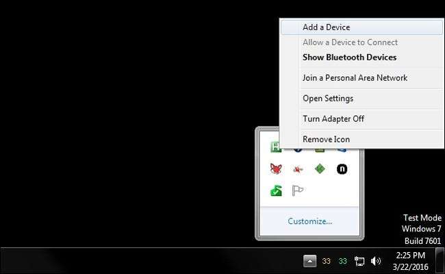 Teraz Harmony Hub przejdzie w tryb parowania. Na komputerze otwórz ustawienia Bluetooth, wybierając Panel sterowania> Bluetooth (lub klikając prawym przyciskiem myszy ikonę Bluetooth na pasku zadań i wybierając „Dodaj urządzenie”).