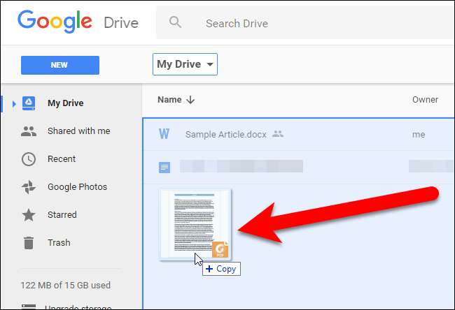 Zwróć uwagę, że wersja pliku w Dokumentach Google nadal ma rozszerzenie .pdf, więc pliki mają tę samą nazwę na liście. Jednak plik Dokumentów Google ma inną ikonę niż plik PDF.
