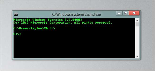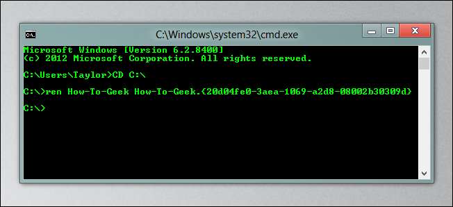 Aby to ukryć, muszę otworzyć wiersz polecenia i przejść do katalogu, w którym się znajduje, ponieważ znajduje się on w katalogu głównym mojego dysku, którego mogę użyć: