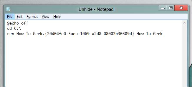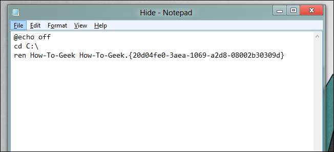 Jeśli chcesz pójść jeszcze o krok dalej, możesz tworzyć pliki wsadowe. Poniższy ukrywa mój folder.