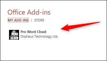 Pojawi się okno "Dodatkowe". Kliknij dwukrotnie dodatek "Pro Word Cloud".