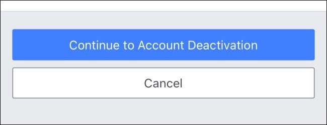 Upewnij się, że wybrana jest opcja „Wyłącz konto”, a następnie kliknąć przycisk „Kontynuuj, aby zamknięcie konta”, aby kontynuować.