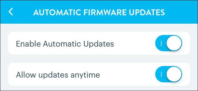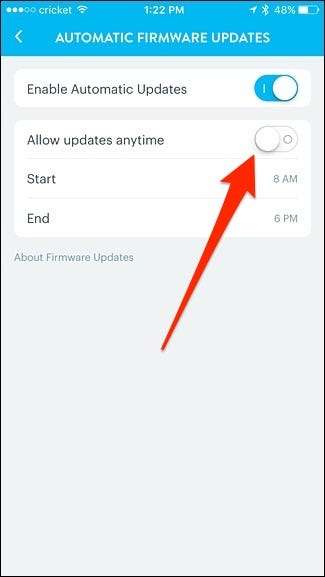 Poniżej możesz wybrać, kiedy aktualizacje oprogramowania układowego zostaną zainstalowane, wyłączając przełącznik obok „Zezwalaj na aktualizacje w dowolnym momencie”.