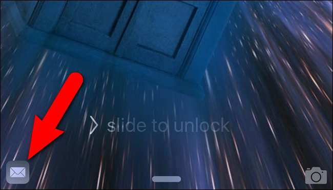 Następnie możesz uzyskać dostęp do swojego iPhone'a, aby zobaczyć ikonę e-mail w lewym dolnym rogu ekranu blokady. Przeciągnij ikonę w górę.
