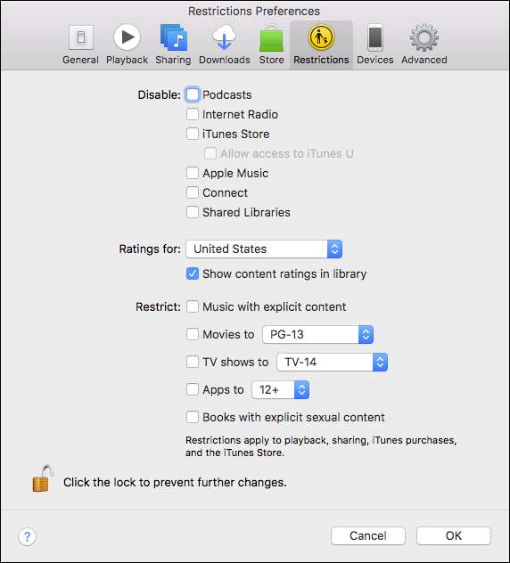 Na komputerze Mac musisz wprowadzić hasło systemowe, aby kontynuować bez względu na konto, ale ponownie powinieneś zmusić dziecko do korzystania z własnego konta, abyś mógł zastosować ograniczenia do jego odtwarzacza iTunes niezależnie od twojego.