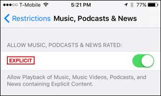 Sekcja „Muzyka, podcasty i wiadomości” pozwala po prostu odfiltrować wulgarne treści.