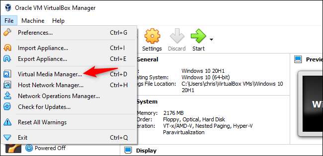VirtualBox 6 dodał opcję graficzną do powiększania i zmiany rozmiaru dysków wirtualnych. Aby uzyskać do niego dostęp, kliknij Plik> Virtual Media Manager w głównym oknie VirtualBox.