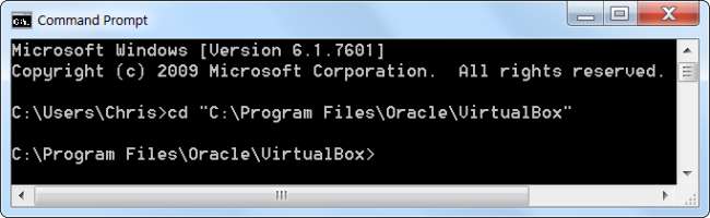cd „C: \ Program Files \ Oracle \ VirtualBox”