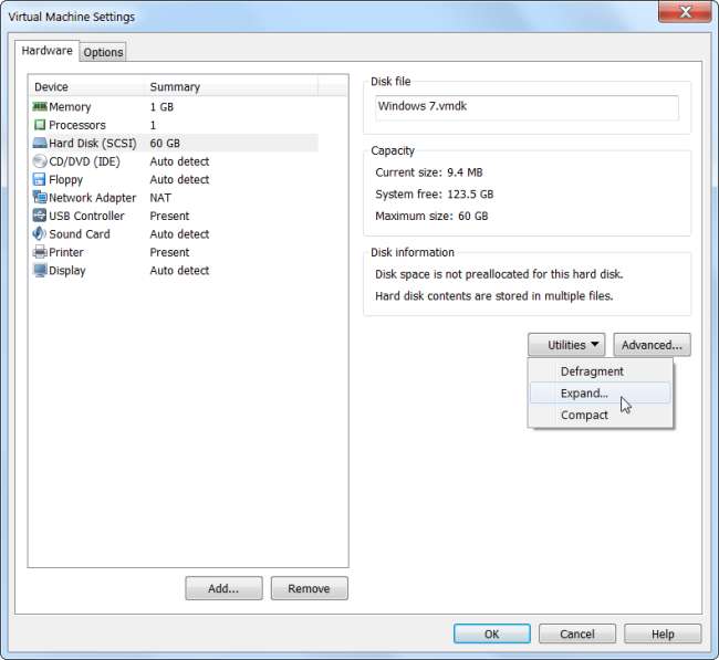 Zwróć uwagę, że istnieją łatwiejsze sposoby na uzyskanie większej ilości miejsca - możesz dodać drugi wirtualny dysk twardy do maszyny wirtualnej z okna ustawień. Możesz uzyskać dostęp do zawartości innego dysku twardego na oddzielnej partycji - na przykład, jeśli używasz maszyny wirtualnej z systemem Windows, inny wirtualny dysk twardy będzie dostępny pod inną literą dysku w maszynie wirtualnej.