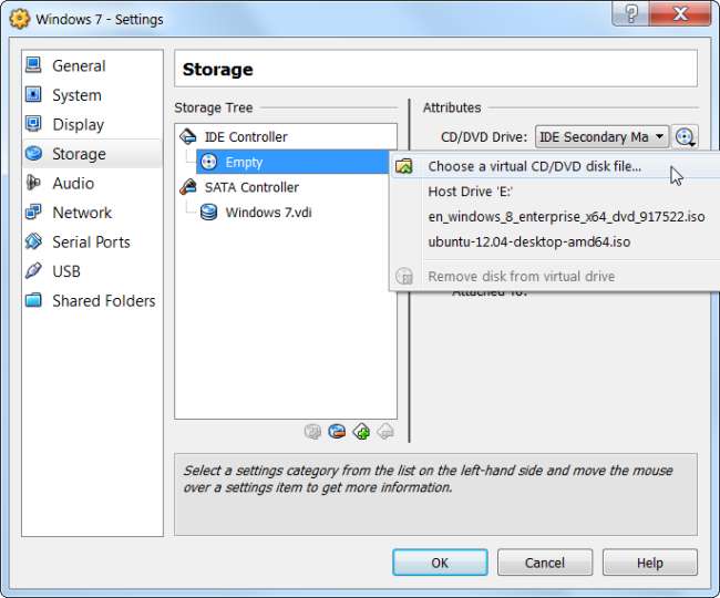 Załaduj plik ISO do maszyny wirtualnej, przechodząc do okna ustawień maszyny wirtualnej, wybierając wirtualny napęd CD i przeglądając plik ISO na swoim komputerze.