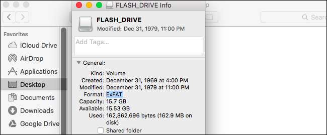 System plików dysku zostanie wyświetlony po prawej stronie pola „Format” pod nagłówkiem Ogólne. Na poniższym zrzucie ekranu dysk jest sformatowany przy użyciu systemu plików exFAT.
