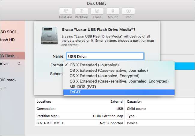 Komputery Mac mają ograniczoną obsługę innych systemów plików - na przykład komputery Mac mogą odczytywać pliki na woluminach NTFS sformatowanych w systemie Windows, ale nie może normalnie pisać na dyskach NTFS . Komputery Mac również nie mają zintegrowanego sposobu formatowania partycji za pomocą NTFS. Użyj exFAT, aby uzyskać doskonałą zgodność z systemem Windows bez ograniczeń FAT32.