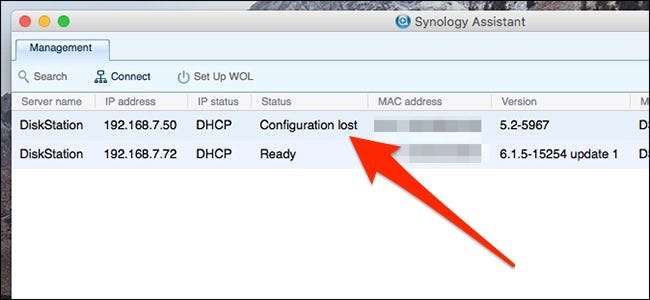 Otwórz program Synology Assistant, a następnie kliknij dwukrotnie dysk NAS (obok niego zostanie wyświetlony napis „Konfiguracja utracona”), aby uzyskać do niego dostęp.