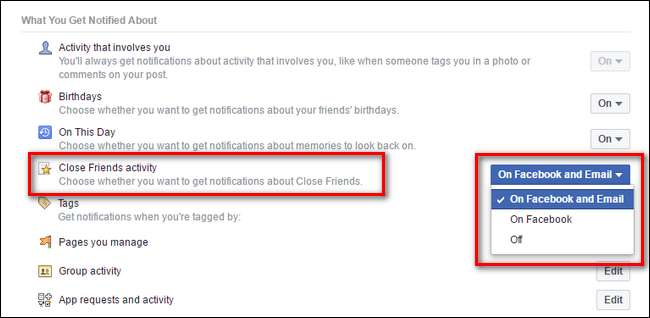 Domyślnie powinno być ustawione na „Na Facebooku i e-mailu”, ale jeśli w przeszłości bawiłeś się ustawieniami powiadomień, możesz je wyłączyć. Ustaw powiadomienie na żądany poziom (Facebook + e-mail lub tylko Facebook).