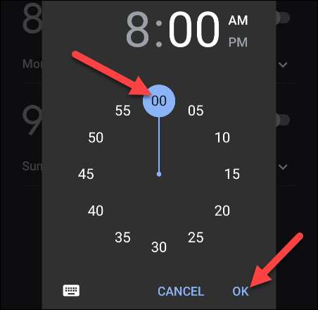 Następnie wybierz czas, aby wyłączyć alarm, a następnie dotknij "OK".