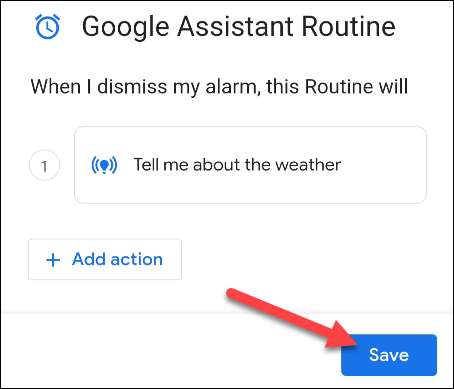 Wcześniejsze "Google Assistant Rutyn" zostanie teraz włączony. Jeśli chcesz usunąć rutynę z alarmu, wystarczy stuknij przycisk "-".