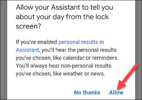 Wreszcie pojawi się wyskakujący komunikat zapytać, czy chcesz zezwolić, aby Asystent Google wykonał te działania, gdy ekran jest zablokowany. Dotknij "Zezwalaj".