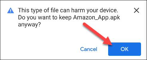 Pojawi się komunikat o potwierdzeniu pobierania pliku APK; Dotknij "OK".