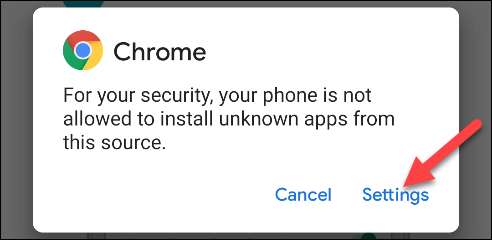 Musisz włączyć możliwość zainstalowania aplikacji z "nieznanych źródeł", co jest, co nie jest od Google Play Store. Jeśli jeszcze tego nie zrobiłeś, pojawi się komunikat poinstruowany, aby dotknąć "Ustawienia".