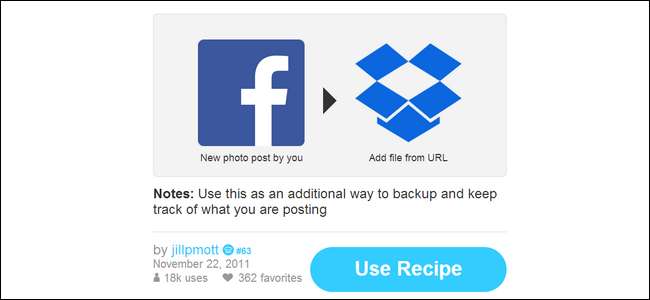 Będziesz potrzebować bezpłatnego konta Dropbox (lub możesz użyć istniejącego) i będziesz potrzebować bezpłatnego konta IFTTT. Uzbrojony w te dwie rzeczy i konto na Facebooku, możesz następnie podłączyć te wartości do [an IFTTT recipe that automatically backs up your new Facebook uploads to Dropbox] (https://ifttt.com/recipes/9075-keep-all-the-photos-you-upload-to-facebook-in-one -bezpieczne miejsce).