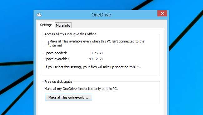 Z drugiej strony, jeśli masz o wiele za dużo rzeczy w OneDrive i nie potrzebujesz ich, aby były dostępne na komputerze, na którym pracujesz, możesz usunąć wszystkie pliki z systemu lokalnego i udostępnić je online -tylko klikając przycisk „Ustaw wszystkie pliki tylko online”.