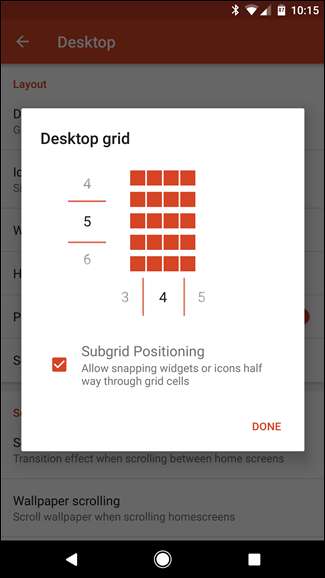 - Siatka aplikacji w szufladzie: Ustaw to na 5 wierszy na 5 kolumn. Kliknij „Gotowe”.