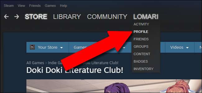 W aplikacji Steam na komputer przesuń kursor myszy na zakładkę z nazwą swojego profilu - powinna znajdować się bezpośrednio na prawo od „Społeczność”. W menu rozwijanym kliknij „Profil”.
