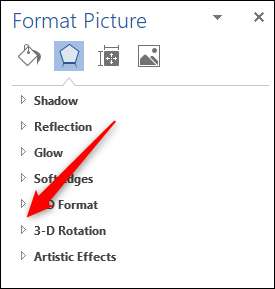 Będziesz teraz w zakładce "Efekty" okienko "Format", który pojawia się po prawej stronie okna. Tutaj kliknij strzałkę obok "Rotacja 3-D", aby wyświetlić jego zawartość.