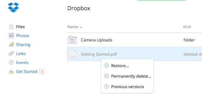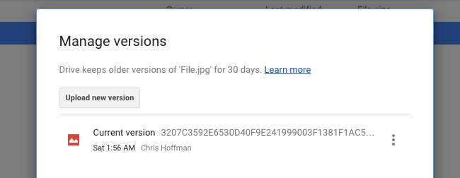 Usługi przechowywania w chmurze zachowują również poprzednie wersje plików. Jeśli Ty - lub program na Twoim komputerze - zmodyfikujesz te pliki, możesz je odzyskać, przywracając starszą wersję pliku. Możesz to zrobić również z witryny internetowej usługi - kliknij plik prawym przyciskiem myszy i wybierz odpowiednią opcję, aby wyświetlić listę starszych wersji plików, których możesz użyć.