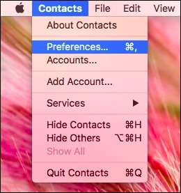 Odpowiedzią jest utworzenie karty „prywatne ja” w Kontaktach. Aby to zrobić, otwórz Preferencje z menu Kontakty lub naciśnij Command + na klawiaturze.