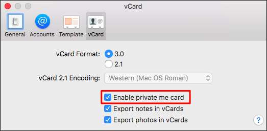 Przejdź do zakładki vCard i kliknij „Włącz kartę private me”. Następnie możesz wyjść z Preferencji.