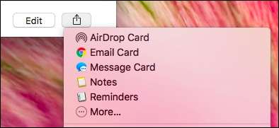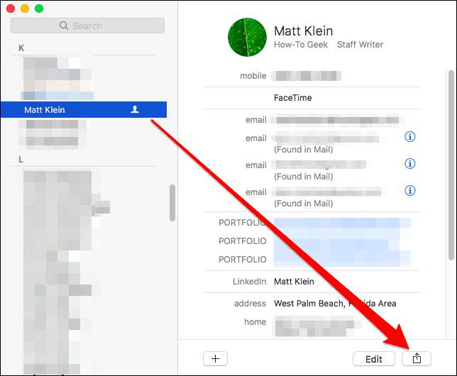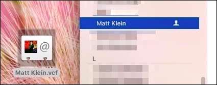 Alternatywnie możesz kliknąć i przeciągnąć wizytówkę vCard z aplikacji Kontakty do innego miejsca docelowego, na przykład na pulpit, Dropbox folder lub pusta wiadomość e-mail.