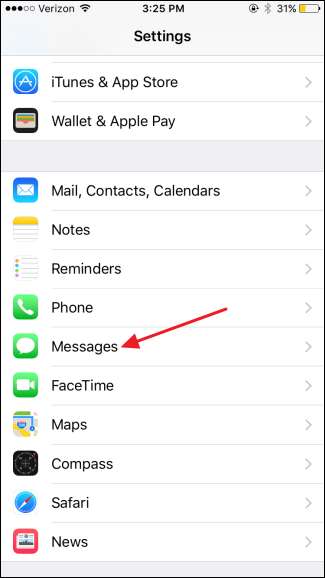 Podobnie jak w przypadku większości iPhone'ów, możesz wyłączyć potwierdzenia odczytu iMessage w aplikacji Ustawienia. W Ustawieniach przewiń w dół i dotknij Wiadomości.