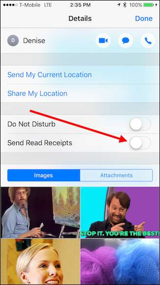 Jedynym sposobem, aby temu zapobiec, jest wyłączenie globalnego przełącznika w ustawieniach. Spowoduje to wyłączenie potwierdzeń odczytu dla wszystkich, więc będziesz musiał wrócić i ponownie włączyć je indywidualnie dla kontaktów, dla których chcesz je włączyć.