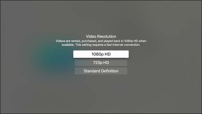 Rozdzielczość jest bardzo ważna przy określaniu zużywanej przepustowości. Jednak ty nie chcesz zmienić rozdzielczość swojego Apple TV w ustawieniach Audio i wideo - nie wpłynie to na wykorzystanie przepustowości, takiej jak Netflix, iTunes i podobne źródła. Wpływa tylko na to, co wyświetla Twój Apple TV. Lepiej pozostawić rozdzielczość Apple TV na „Automatycznie”, aby wyświetlał się w natywnej rozdzielczości telewizora lub monitora.