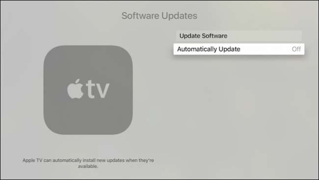 Na następnym ekranie wyłącz automatyczne aktualizacje. Będziesz teraz musiał ręcznie zaktualizować Apple TV za pomocą przycisku „Aktualizuj oprogramowanie”.