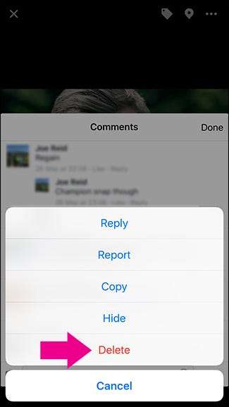 Na urządzeniach mobilnych proces przebiega nieco inaczej. Naciśnij i przytrzymaj komentarz, który chcesz usunąć, a następnie w wyświetlonym menu stuknij Usuń.