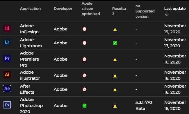 Możesz także polować na te informacje - na przykład, jeśli zastanawiasz się, czy profesjonalna aplikacja obsługuje Silicon Apple, możesz udać się do strony internetowej programistów i sprawdzić, czy mają ogłoszenie. Możesz także wykonać wyszukiwanie stron internetowych nazwy aplikacji i "M1 Mac", aby sprawdzić, czy działa prawidłowo na pierwszym MACBook Air, MacBook Pro i MAC Mini. Ale ten katalog powinien zaoszczędzić trochę czasu.