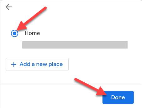 Będziesz mógł wybrać z zapisanych lokalizacji lub wprowadź nowy. Stuknij "Gotowe", gdy dokonałeś wyboru.