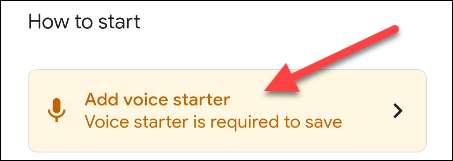 W momencie pisania Google wymaga polecenia głosu, aby być powiązanym z każdą rutyną. Nie będziemy tego korzystać, aby rozpocząć rutynę, ale nadal jest potrzebny. To także, jaka będzie nazwa procedury. Dotknij "Dodaj rozrusznik głosowy".