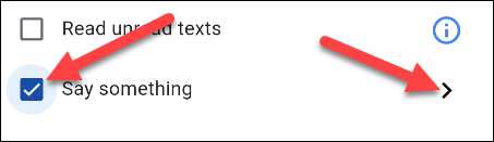 Następnie zaznacz pole "Powiedz coś" i dotknij ikony strzałki.