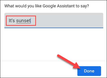Wpisz wszystko, co chcesz tutaj. Jeśli dodałeś inteligentny głośnik, jest to fraza, że Asystent Google ogłosi. Dotknij "Gotowe", gdy jesteś gotowy.