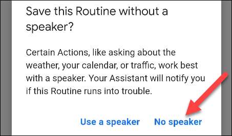Jeśli nie wybrałeś głośnika podczas instalacji, Google poprosi o upewnienie się, że nie chcesz używać jednego. Stuknij "bez głośnika", jeśli jesteś pewien.