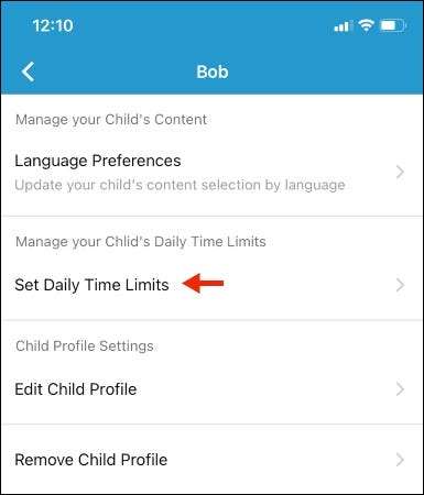 Aby zarządzać dziennymi limitami czasu dziecka, dotknij "Ustaw dzienne limity czasu".