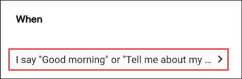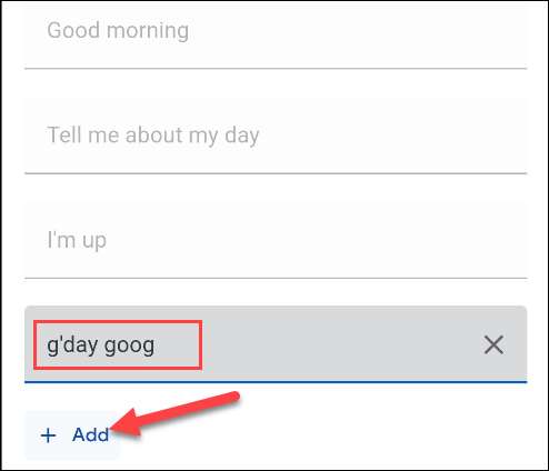 W tym miejscu można wybrać polecenia, aby zainicjować rutynę "Dzień dobry". Istnieje kilka poleceń już wymienionych, a możesz stuknąć "Dodaj", aby wprowadzić więcej.
