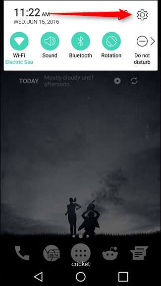 Pierwszą rzeczą, którą musisz zrobić, jest przejście do menu Ustawienia. Na większości telefonów możesz to zrobić, pociągając w dół obszar powiadomień i dotykając ikony koła zębatego.